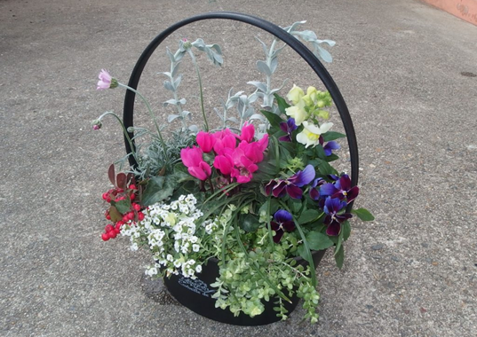 フラワーバスケットに季節の花苗を寄せ植えしていただく予定です。